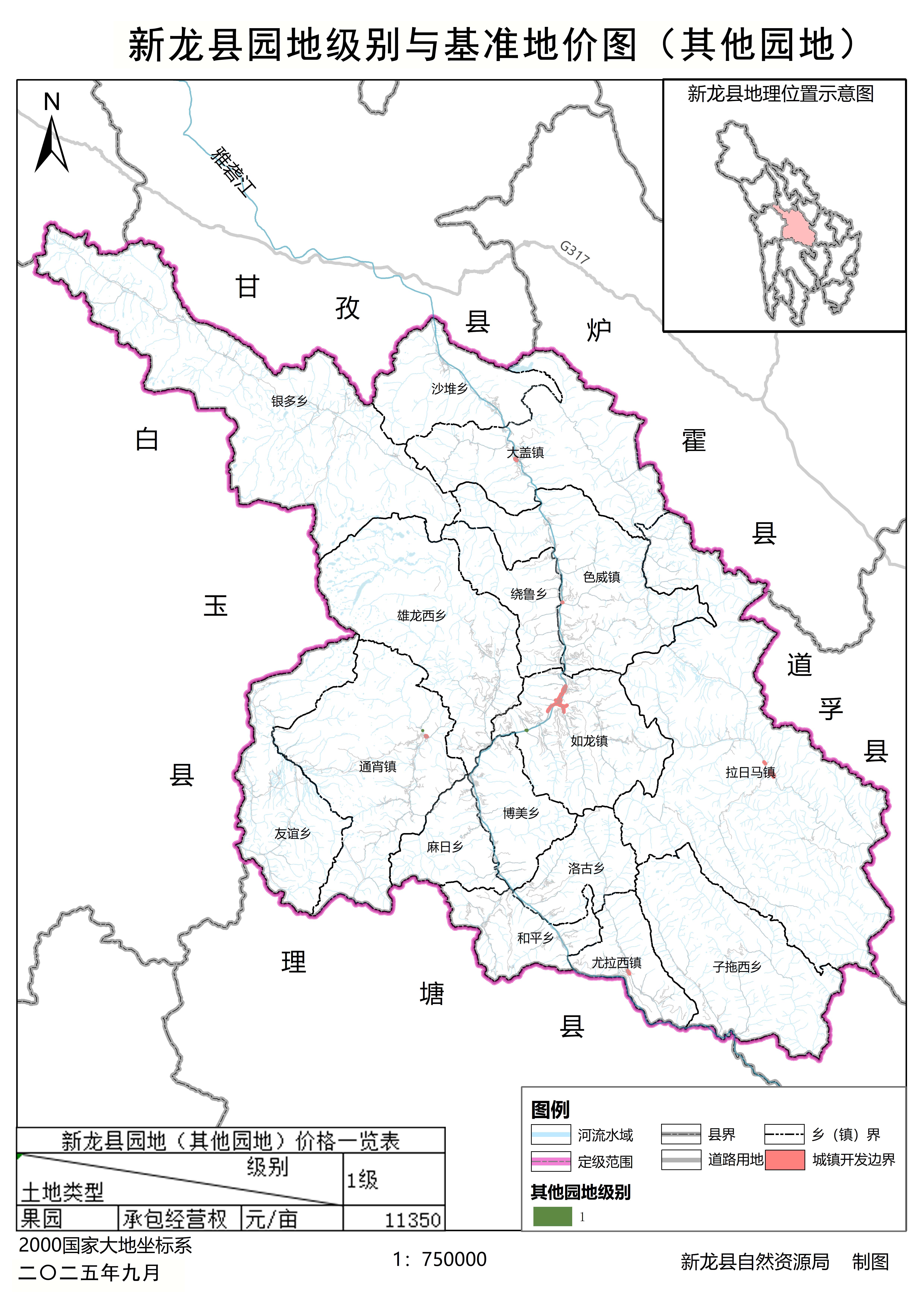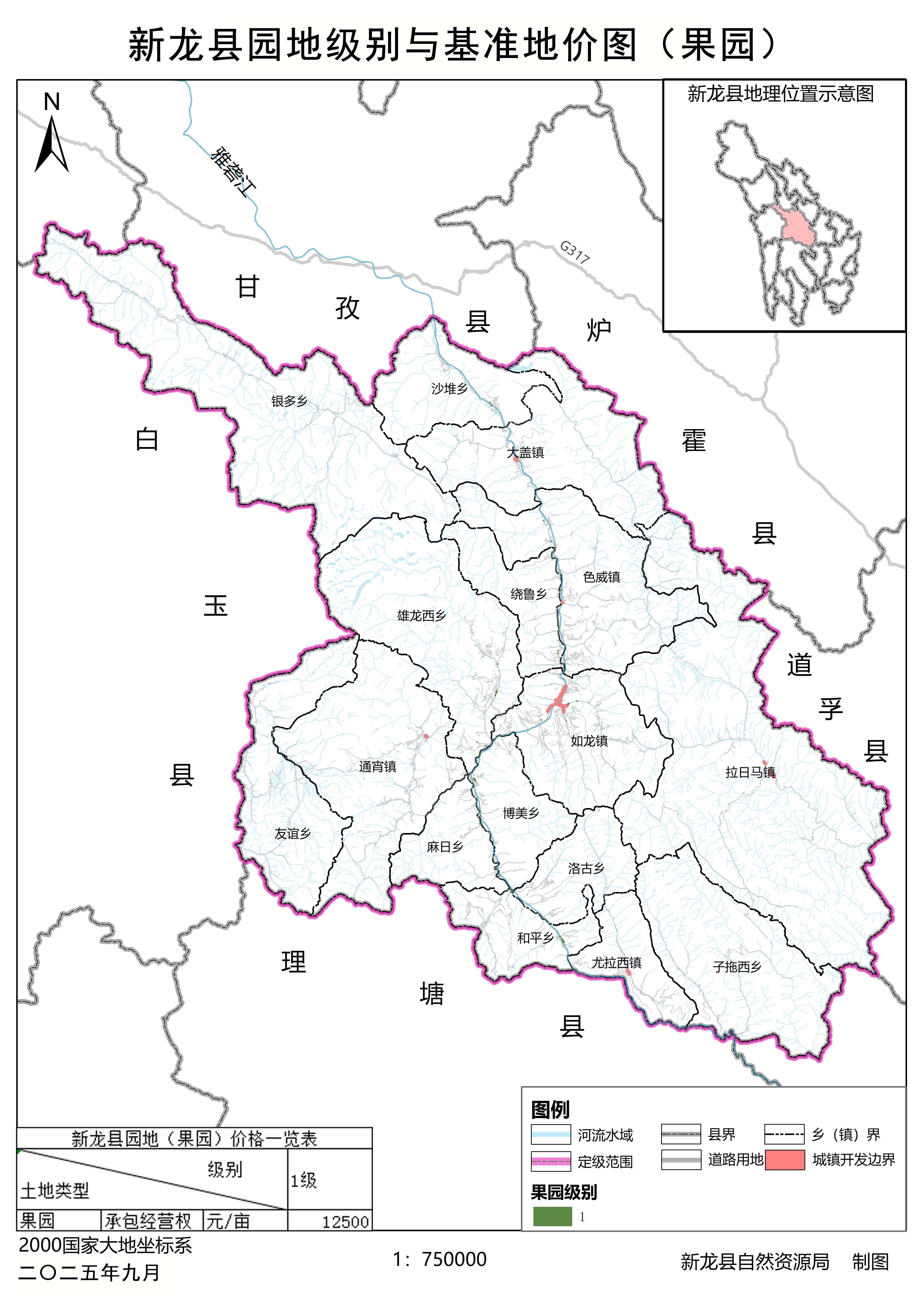 附件3:新龙县园林草地级别与基准地价图。