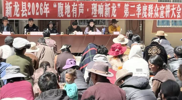4月20日,县级宣讲团赴麻日乡召开2026年“腹地有声 理响新龙”第二季度群众宣讲大会,县委常委、统战部部长降呷参加宣讲并讲话,乡党委副书记、乡长德青主持会议。