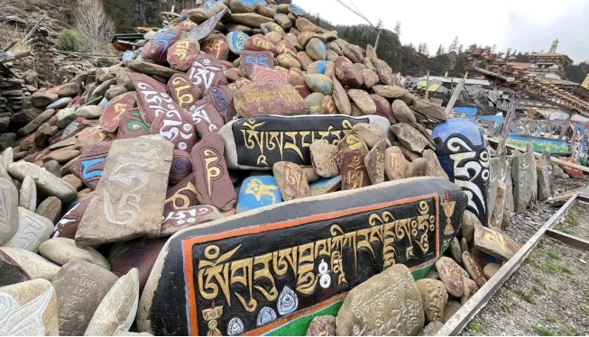 拉日马玛尼石雕的呈现形式多样,或独立镌刻于岩石、片石之上,或依岩造型,融自然灵气与人文美感于一体;或堆放于村口、路旁、山顶,巍然屹立;或供奉于民居屋顶、门檐,成为守护家宅的建筑装点,是承载藏族信仰与文化的珍贵载体。